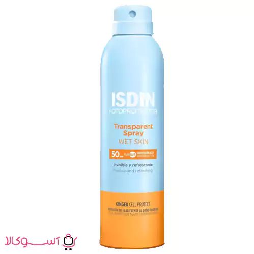اسپری ضد آفتاب ایزدین transparent spray wet skin spf 50 حجم 250 میل