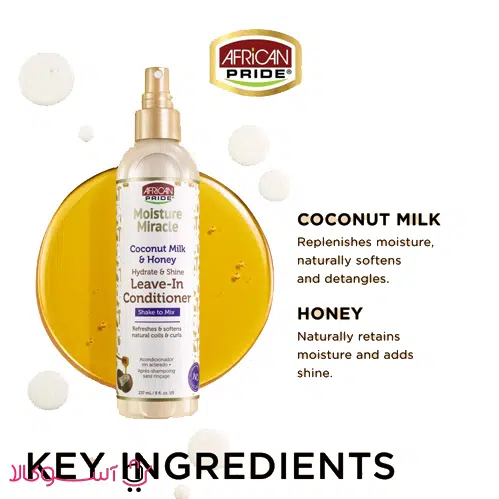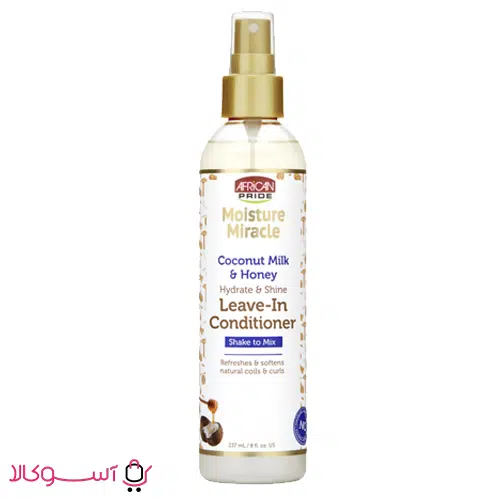 اسپری شیر مو و آبرسان موی فر افریکن پراید مدل coconut milk & honey حجم 237 میل