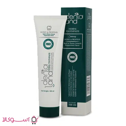 خمیردندان گیاهی دنتالند حاوی عصاره ریحان و آویشن با طعم نعناع حجم 100 میل