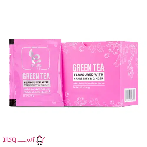پودر عصاره چای سبز الن کر با طعم کرنبری، زنجبیل و زعفران بسته 15 عددی