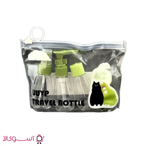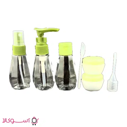 محتویات این مجموعه شامل سه عدد بطری کاربردی در سه نوع مختلف است. بطری اسپری برای پخش یکنواخت مایعات سبک مانند تونر یا عطر بدن، بطری استوانه‌ای برای مایعات رقیق تر نظیر شامپو یا لوسیون، و بطری پمپی برای استفاده آسان از کرم ها و شوینده ها. در کنار آن، دو عدد ظرف کاسه ای کوچک برای نگهداری کرم ها و ماسک های صورت طراحی شده‌اند. تا از نشت و آلودگی جلوگیری شود. همچنین، یک قاشقک ظریف برای برداشت بهداشتی مواد. و یک قطره چکان دقیق جهت انتقال مایعات به بطری ها یا تنظیم مقدار مصرف در بسته قرار دارد. ترکیب حساب شده این ظروف درون کاور زیپی محکم و شفاف، حمل و دسترسی به لوازم شخصی را ساده و منظم کرده و امکان استفاده ای تمیز، مطمئن و بادوام را در طول هر سفر فراهم می‌آورد.